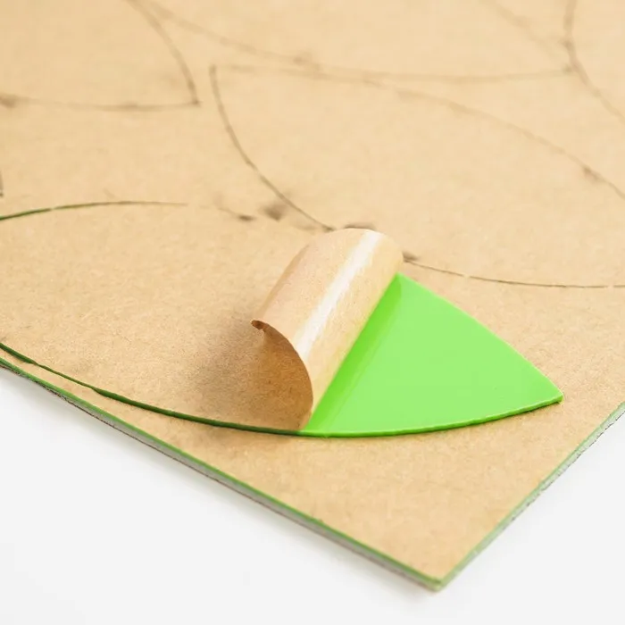 - Если нужно состыковать элементы наклейки, начинайте с самого крупного. Например, если наклейка в виде дерева — приклейте сначала ствол, а потом ветви.