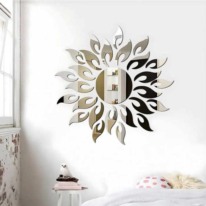 Принесите солнечное настроение в ваш дом с этим ярким зеркальным панно! Набор включает 26 элементов, изготовленных из высококачественного акрила, которые складываются в композицию солнца. Общий размер панно составляет 50x50 см, что делает его заметным и выразительным элементом декора. Элементы панно представляют собой лучи (большой листочек 9.5 х 3.5 см, маленький 7 х 2.5 см, всего 26 листочков) и маленький круг, которые, соединяясь, создают изображение солнечного диска. Каждое звено этого произведения искусства имеет зеркальную поверхность, отражающую свет и придающую композиции дополнительную глубину и объем.