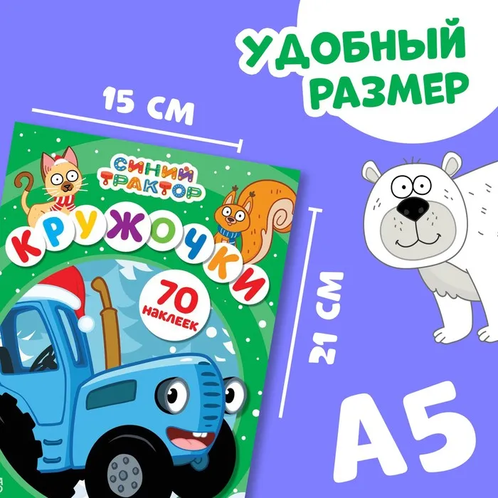 Наклейки «Кружочки», А5, 16 стр., 70 наклеек, Синий трактор — Характеристики