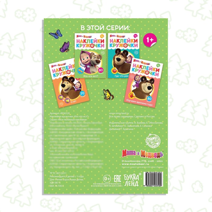 Наклейки-кружочки «Кто что ест?», 16 стр., А5, Маша и Медведь — Характеристики