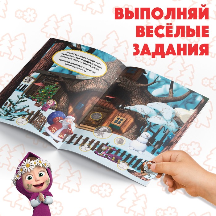 Внутри вы найдёте интересные задания. Выполняя их, малыш расширит кругозор. Также в книге есть забавные иллюстрации с любимыми героями мультфильма «Маша и Медведь».
