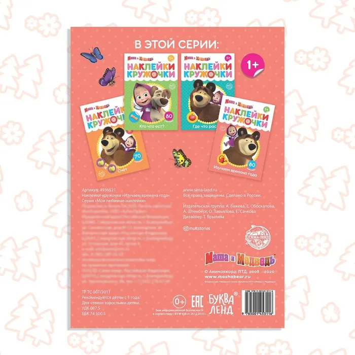 Наклейки-кружочки «Времена года», 16 стр., А5, Маша и Медведь — Характеристики