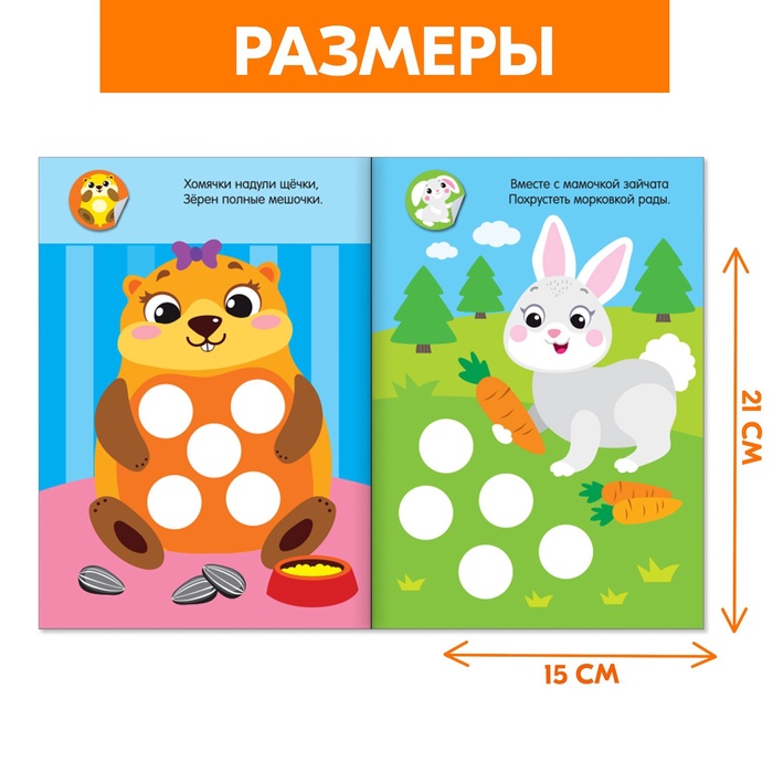 Набор книг с наклейками-кружочками создан для самых маленьких читателей. Приклеивая яркие кружочки, ребёнок узнает много нового об окружающем его мире и потренирует ловкость пальчиков, внимательность и аккуратность.