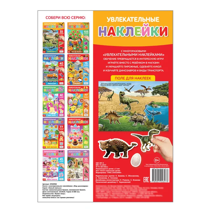 С многоразовыми наклейками обучение превращается в интересную игру! Играйте вместе с ребёнком в магазин и украшайте пирожные, одевайте кукол и изучайте динозавров и виды транспорта.