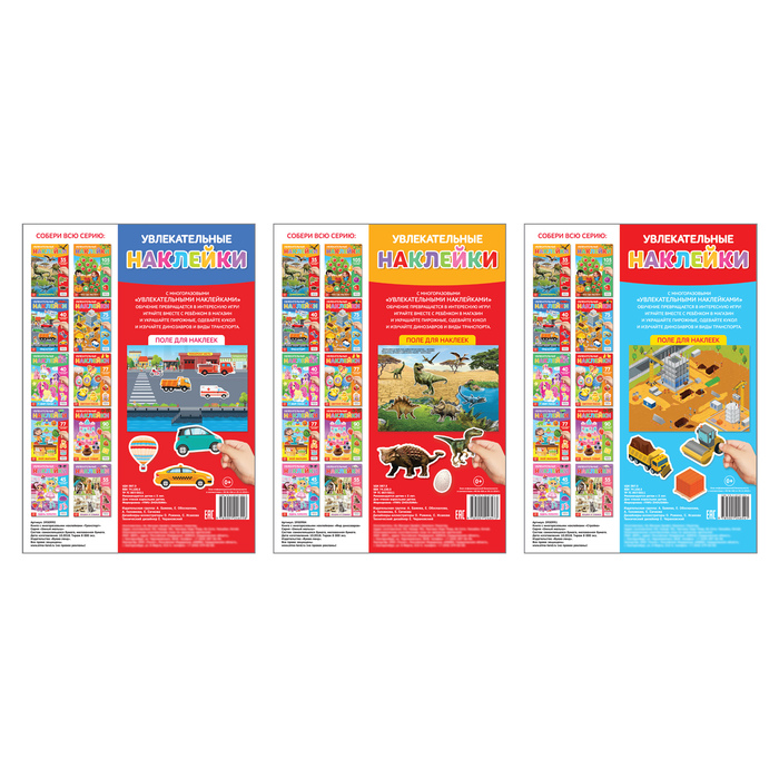 С многоразовыми наклейками обучение превратится в интересное занятие. Играйте вместе с ребёнком в стройку, изучайте динозавров и виды транспорта.