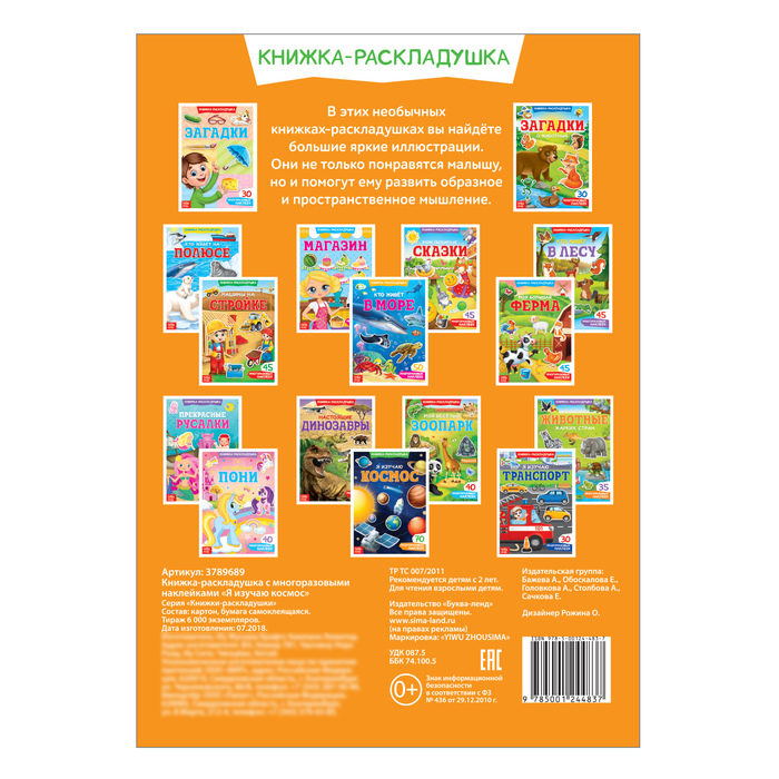 Книжка-раскладушка раскрывается как плакат, в ней нет переплёта, поэтому ребёнку с ней будет удобно заниматься.
