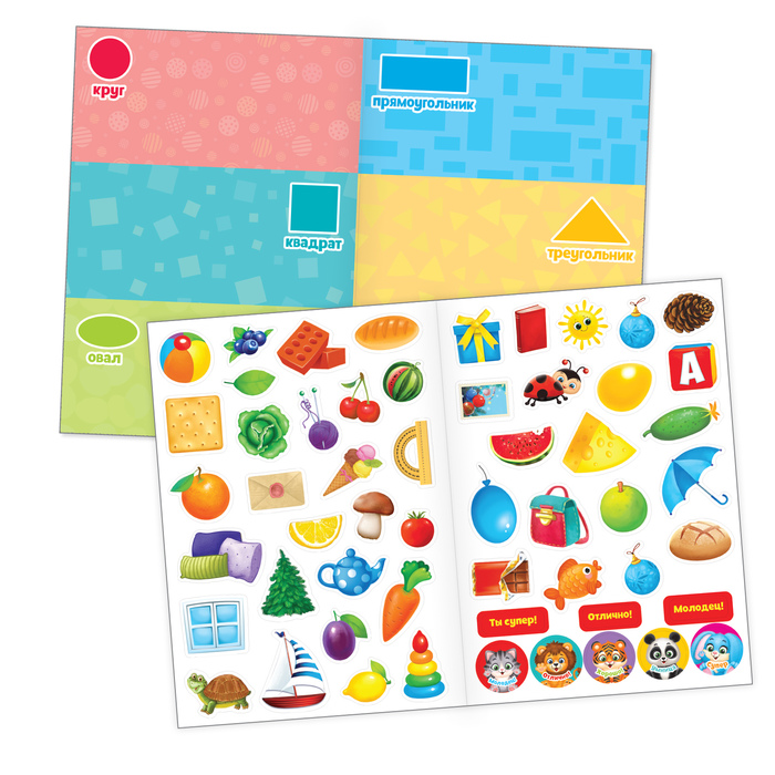 С многоразовыми наклейками ребёнок сможет изучить цвета, формы и запомнит геометрические фигуры.