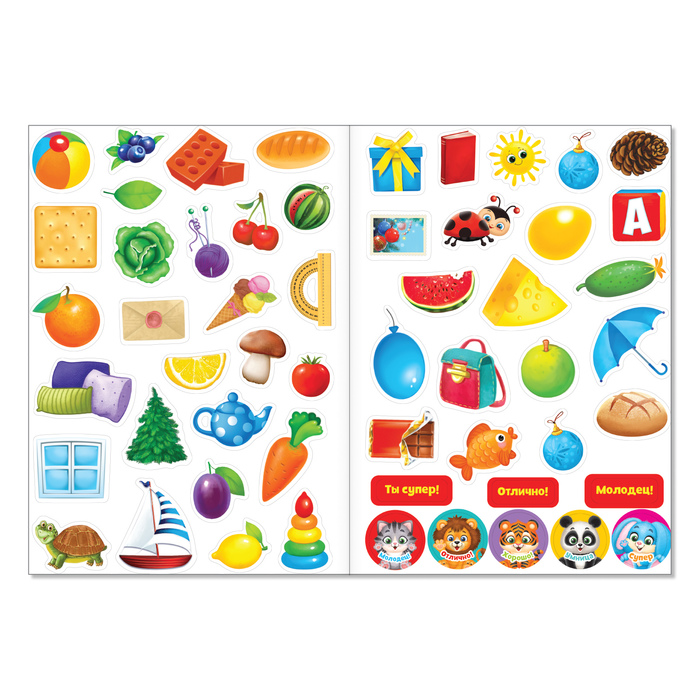 В каждой книге вы найдёте много красочных наклеек и поле для них. Яркие стикеры можно использовать по 3‒4 раза. Подходят для декорирования тетрадей и дневничков.