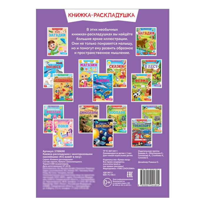 Книжка-раскладушка раскрывается как плакат, в ней нет переплёта, поэтому ребёнку с ней будет удобно заниматься.