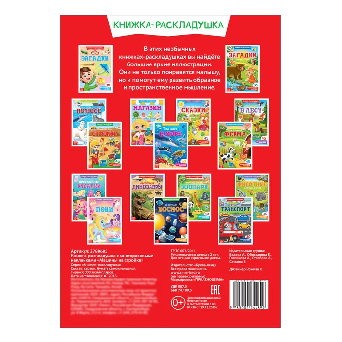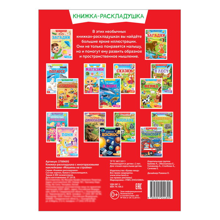 Наклейки многоразовые «Машины на стройке», книжка-раскладушка — Характеристики