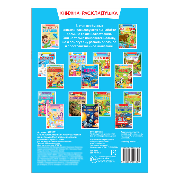 Книжка-раскладушка раскрывается как плакат, в ней нет переплёта, поэтому ребёнку с ней будет удобно заниматься.