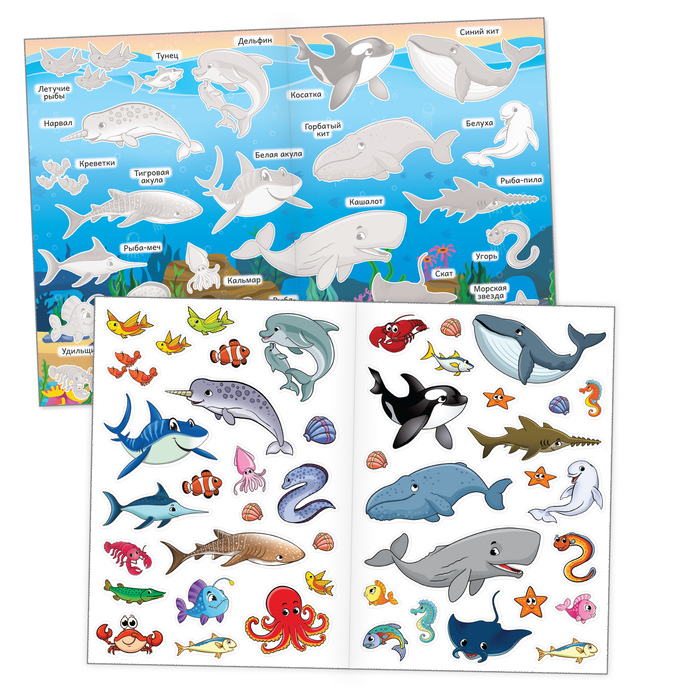 Наклейки многоразовые «Морские животные», формат А4 — Характеристики