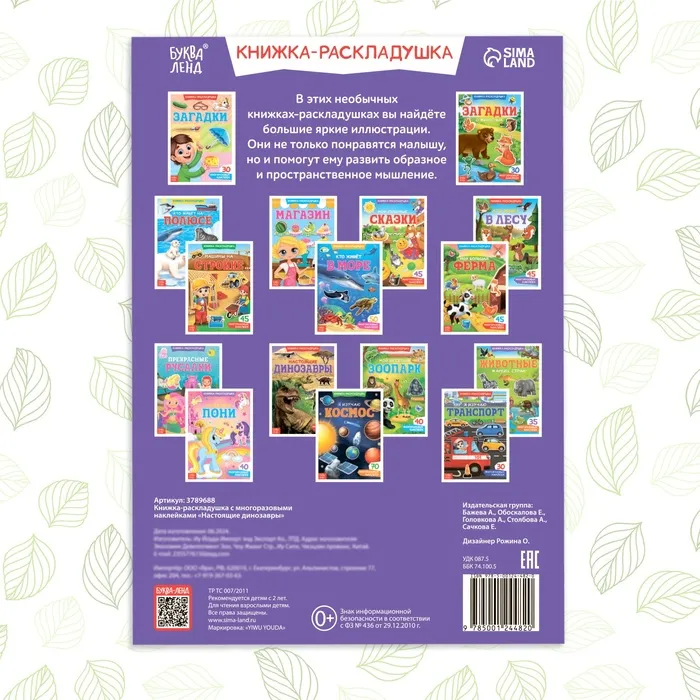 Книжка-раскладушка раскрывается как плакат, в ней нет переплёта, поэтому ребёнку с ней будет удобно заниматься.