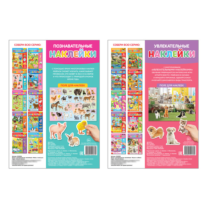 Набор многоразовых детских наклеек включает в себя 2 издания разной тематики: «Кошки и собаки» и «Мамы и малыши». Превращайте обучение в увлекательную игру и развивайте полезные навыки.