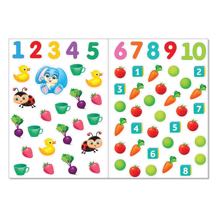 С многоразовыми наклейками ребёнок сможет изучить буквы алфавита, цифры, цвета, геометрические фигуры и даже запомнит первые английские слова!