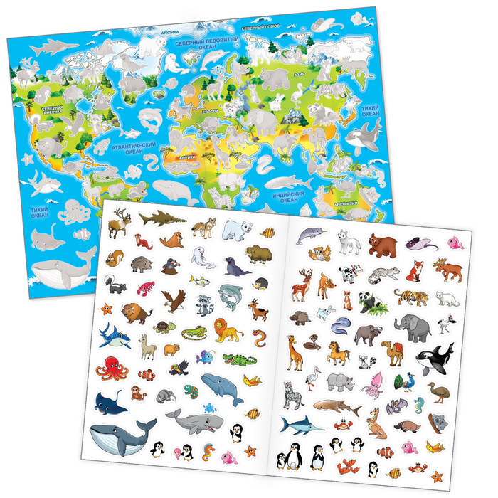 С многоразовыми наклейками ребёнок познакомится животными, которые обитают в разных концах света в море и на суше, а также разовьёт аккуратность, пространственное мышление и мелкую моторику рук.