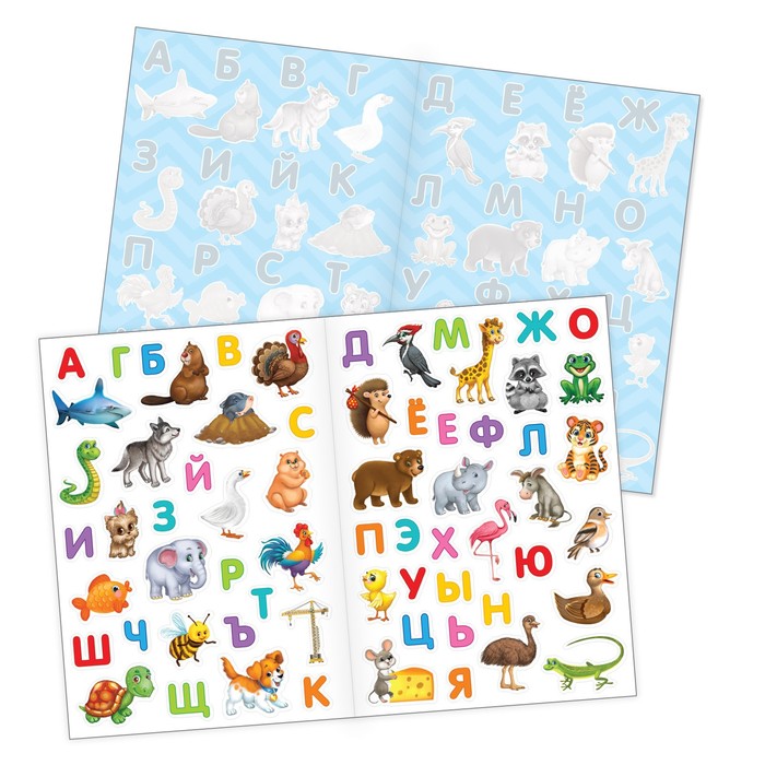 С многоразовыми наклейками обучение превратится в интересное занятие. Играйте вместе с ребёнком, разгадывайте загадки и изучайте буквы алфавита и животных.