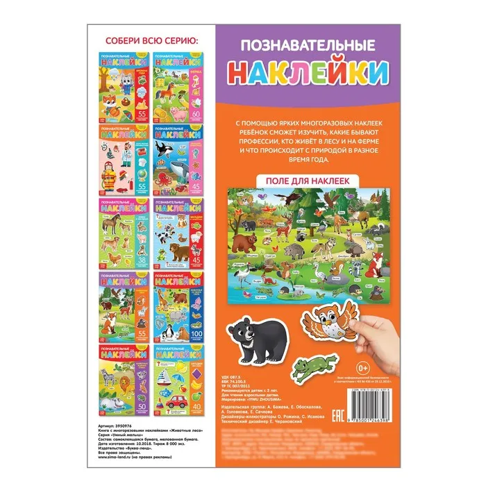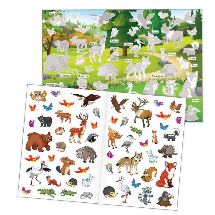С многоразовыми наклейками обучение превратится в интересное занятие. Играйте вместе с ребёнком, разгадывайте загадки и изучайте животных, которые обитают в лесу.