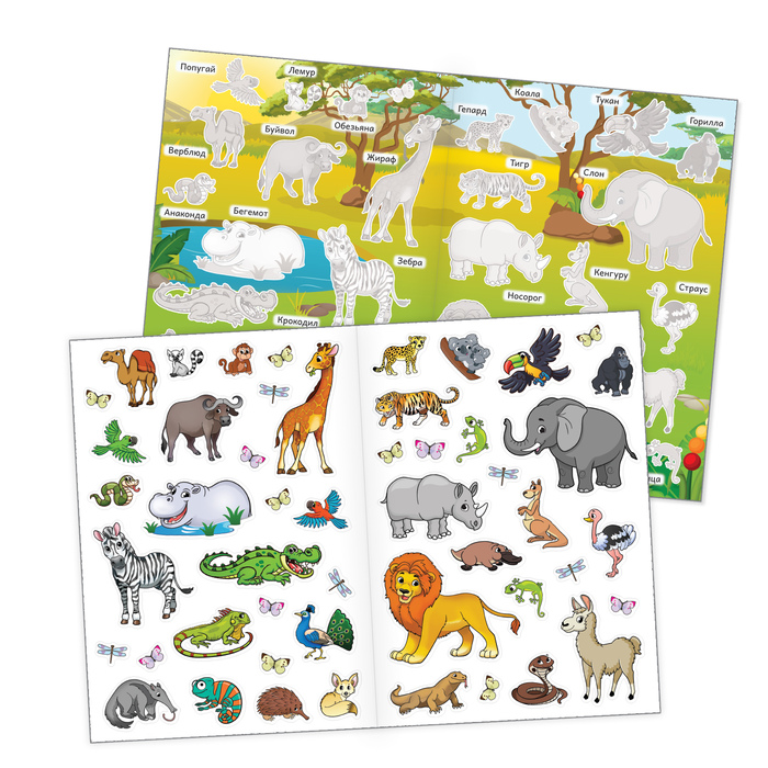 Наклейки многоразовые «Животные жарких стран», формат А4 — Характеристики