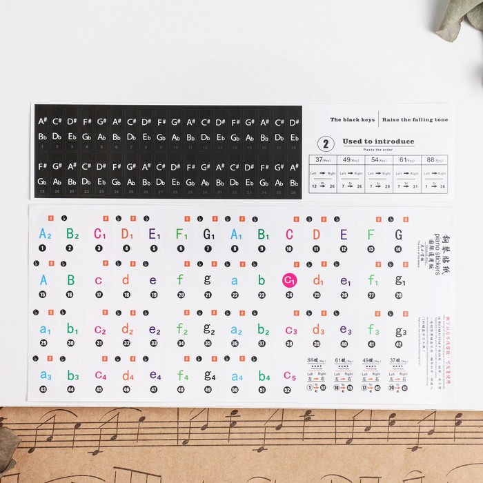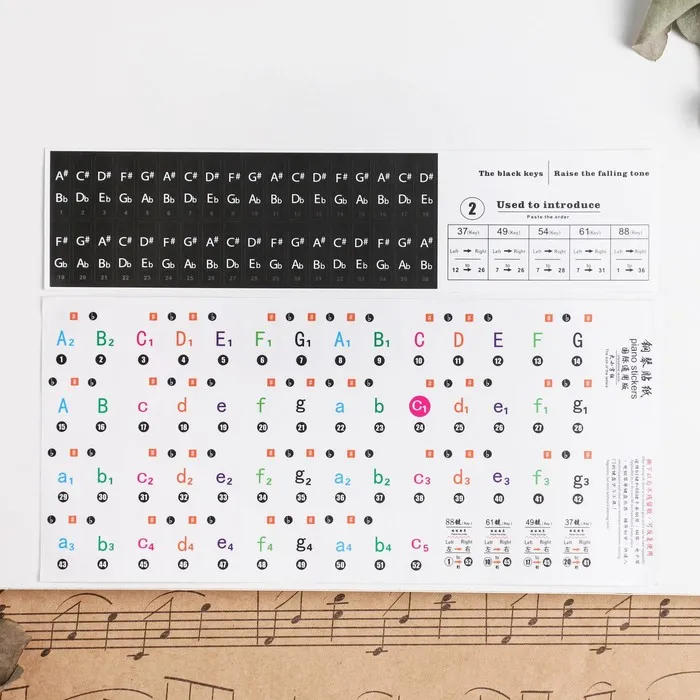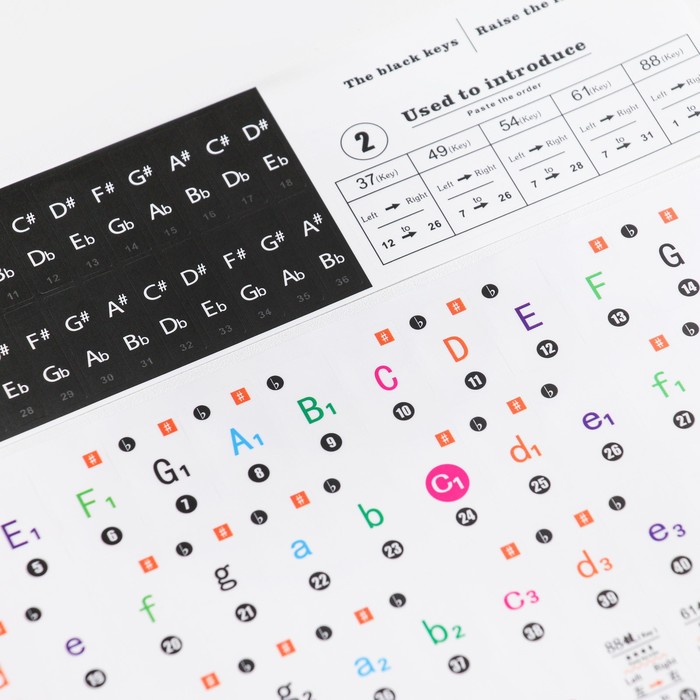 Наклейки на клавиши пианино, цветные