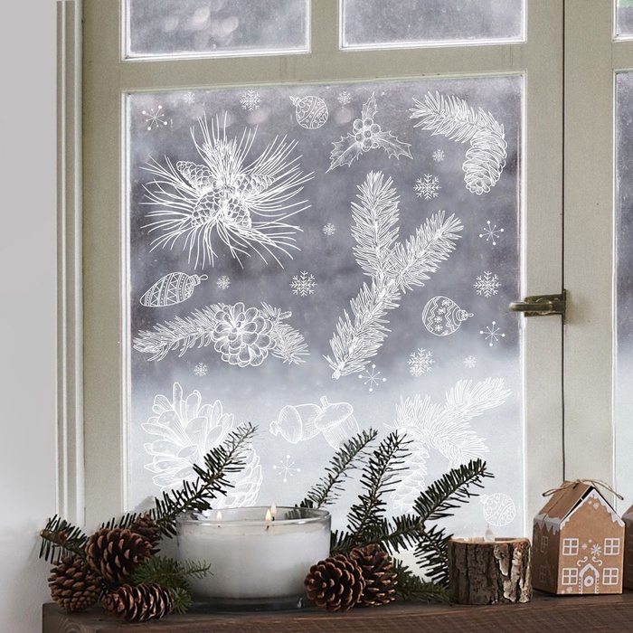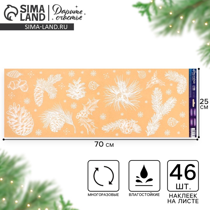 Наклейки на окна многоразовые «Новый год», еловые ветви 70 х 25 см — Характеристики