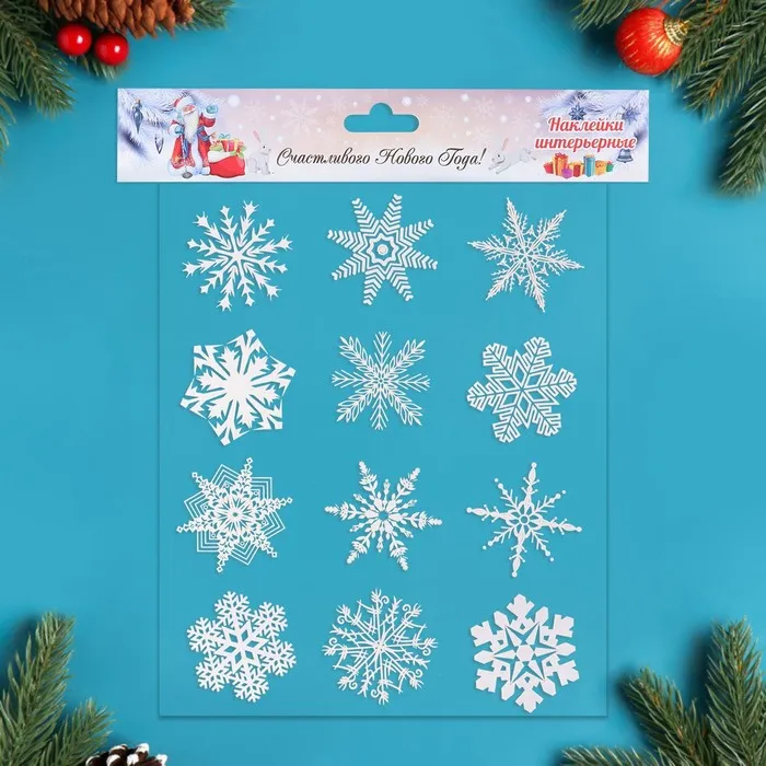 Наклейки новогодние «Снежинки» белые, 29.2×38.1 см