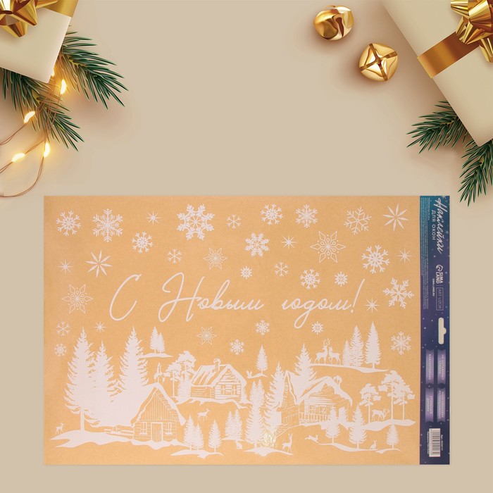 Наклейки новогодние на окна «Новогодний городок», многоразовые, 33 х 50 см
