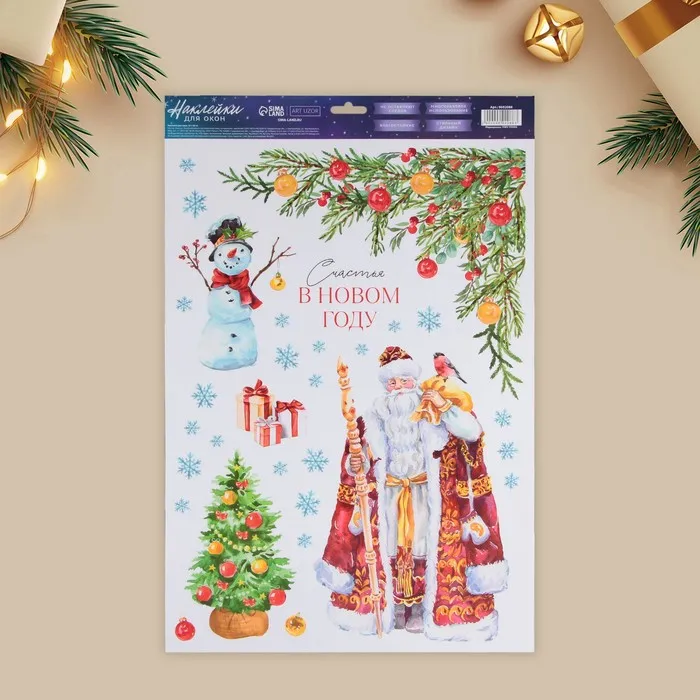 Наклейки новогодние на окна «Счастья в Новом году», многоразовые, 33 х 50 см