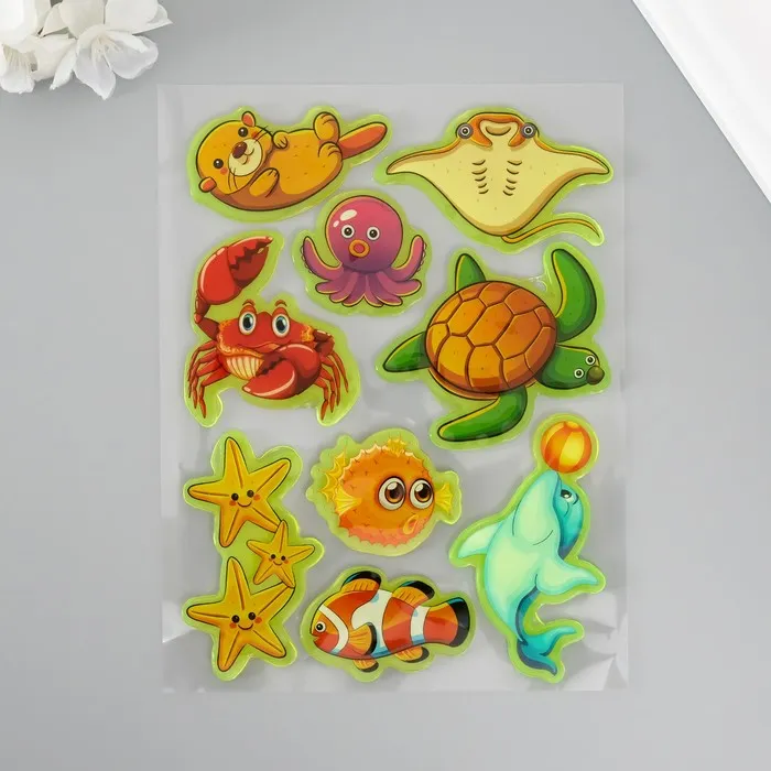 Интерьерные наклейки на стекло, окно «Морские друзья», силикон, фосфорные, 20×16 см