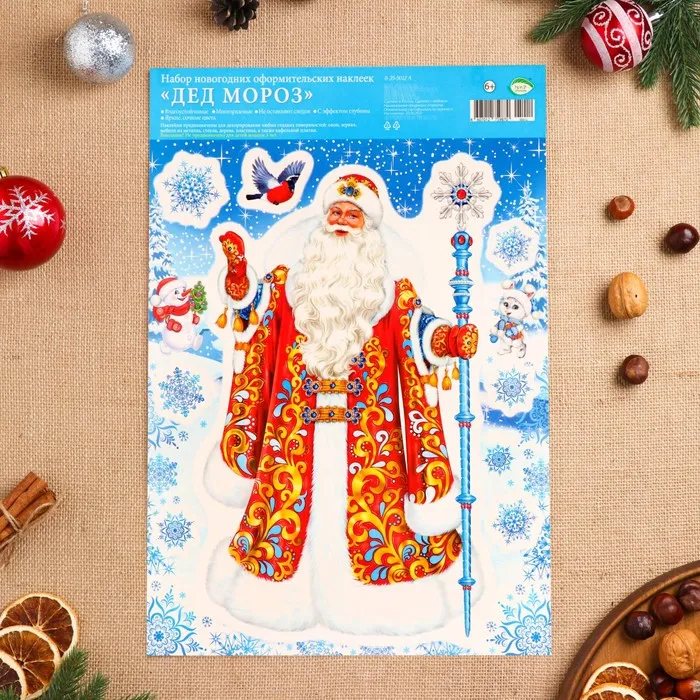 Наклейки новогодние «Дед Мороз» 33.8×24.4 см