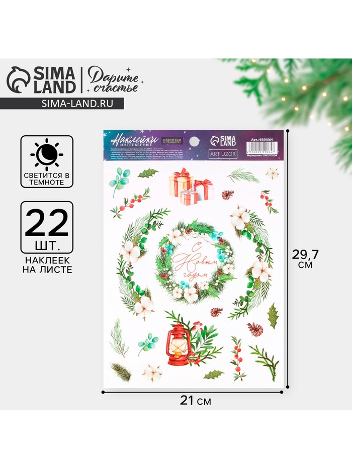 Наклейки новогодние, интерьерные со светящимся слоем «С Новым годом», 21 х 29.5 см