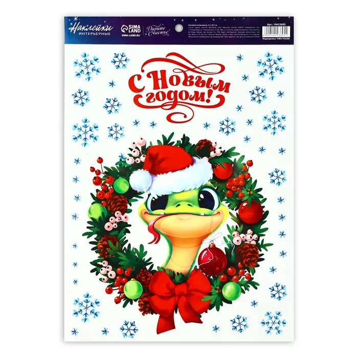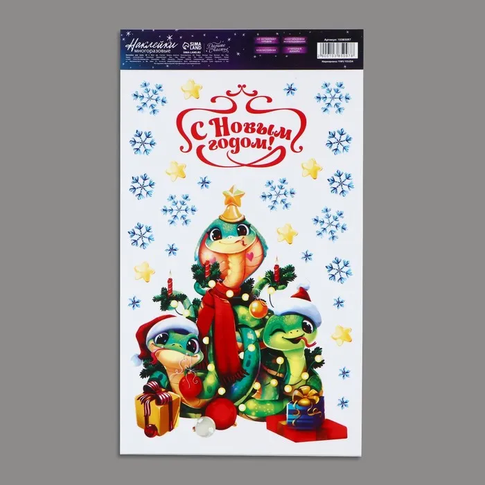 Наклейки новогодние на окна, виниловые «Змея 2025», многоразовые, 20 х 34.5 см