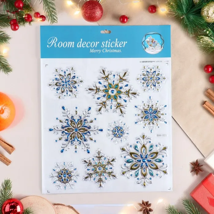 Наклейки новогодние для окон «Cнежинки», многоразовые, 33 х 50 см