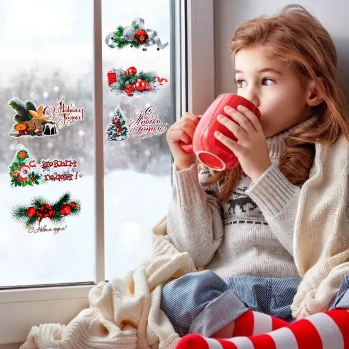 Наклейки на окна «Новогодние», 6 шт., 10×17.5 см — Характеристики