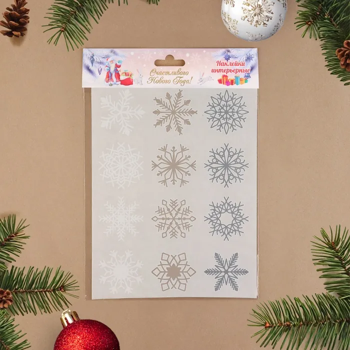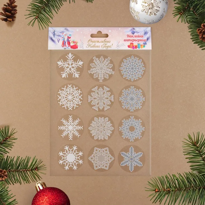 Наклейки на окна новогодние «Снежинки», 12 шт., 9×9 см — Характеристики