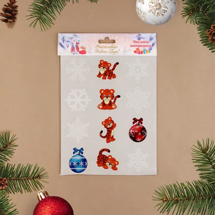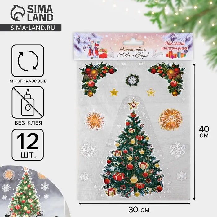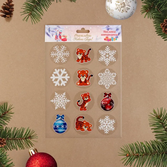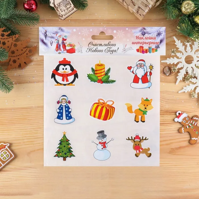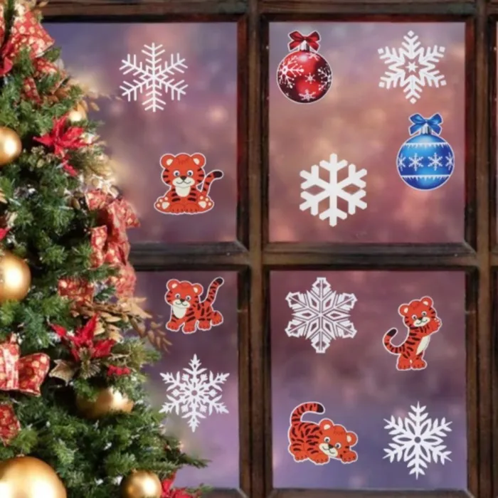 Наклейки на окна новогодние «Снежинки» 9×9 см, 12 шт., МИКС — Характеристики
