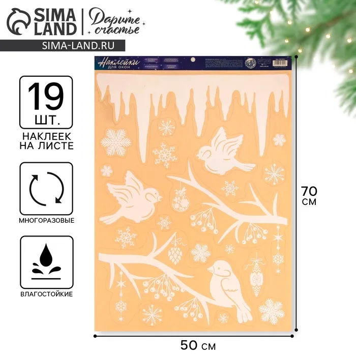 Наклейки новогодние на окна «Новогодние птички» , многоразовые, 50 х 70 см