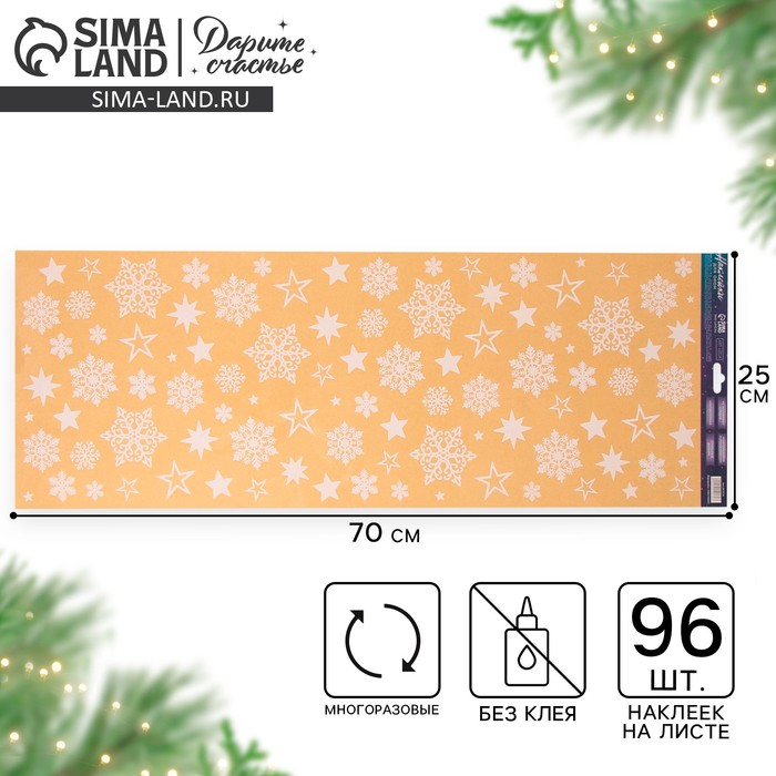 Наклейки на окна многоразовые «С Новым годом», снежинки, 70 х 25 см