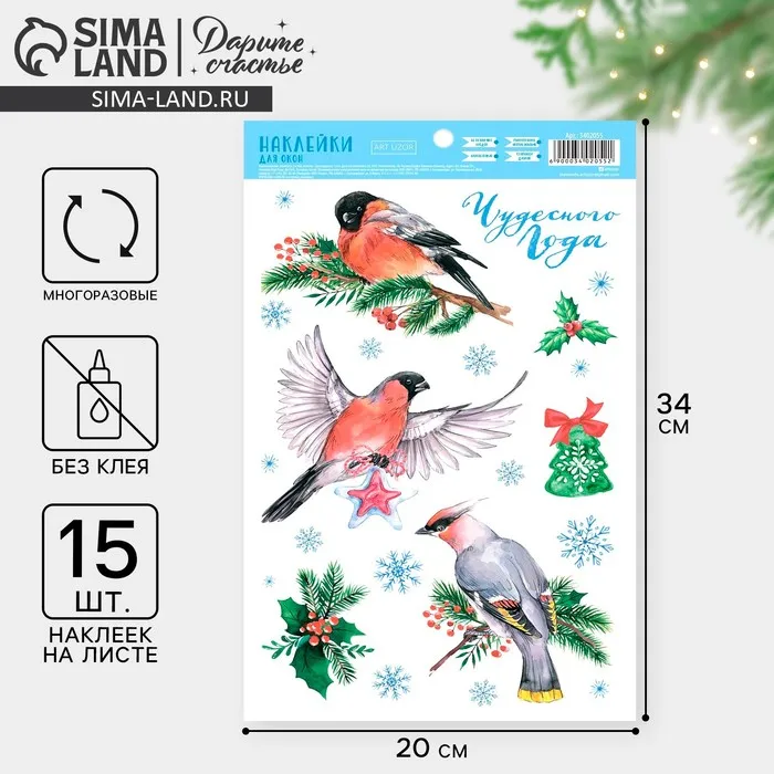 Наклейки на окна, светящиеся «Новогодние», 27 х 21 см — Характеристики