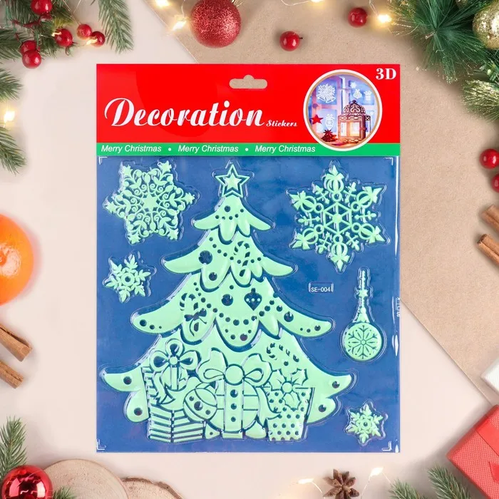 Наклейки на окна, светящиеся «Новогодние», 27×21 см, МИКС — Характеристики