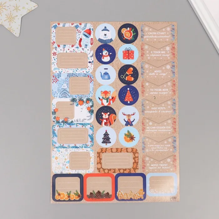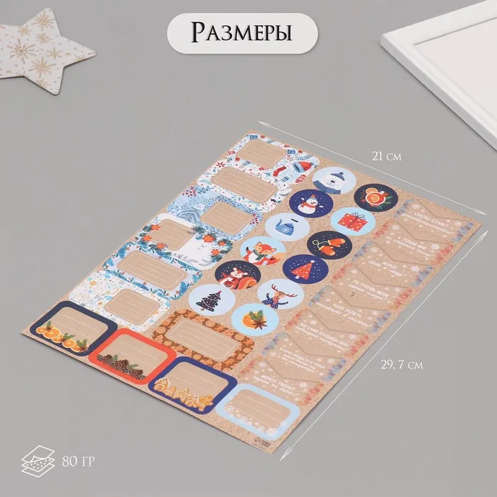 Наклейки на подарки "Новогодние зверушки" 21х29,7 см — Характеристики