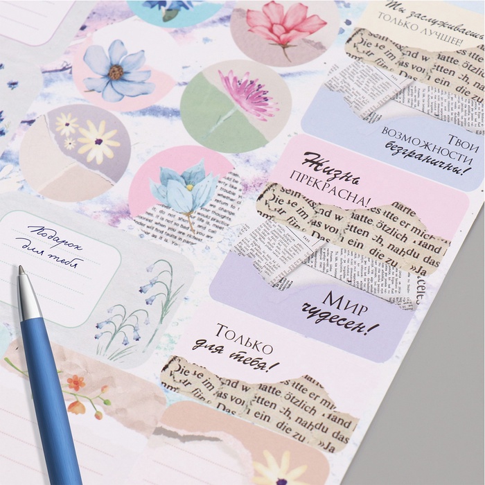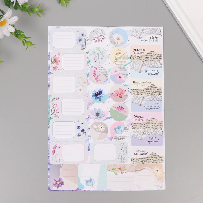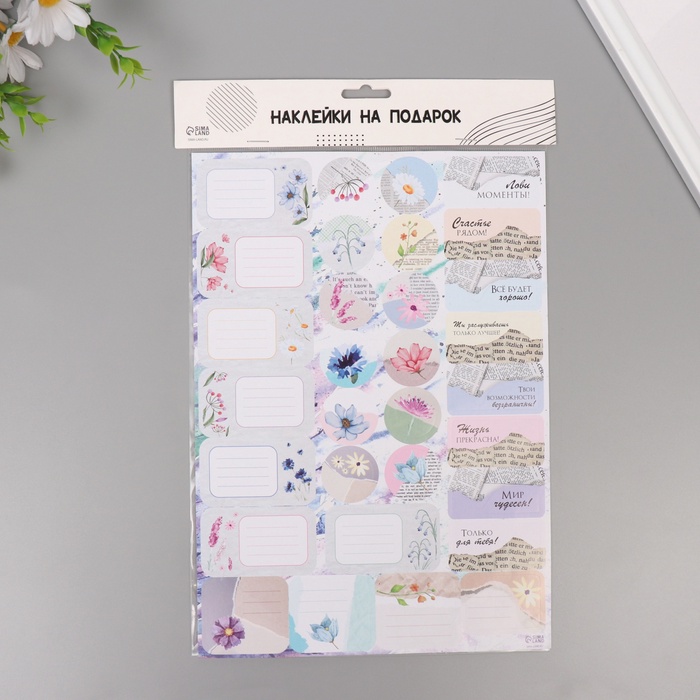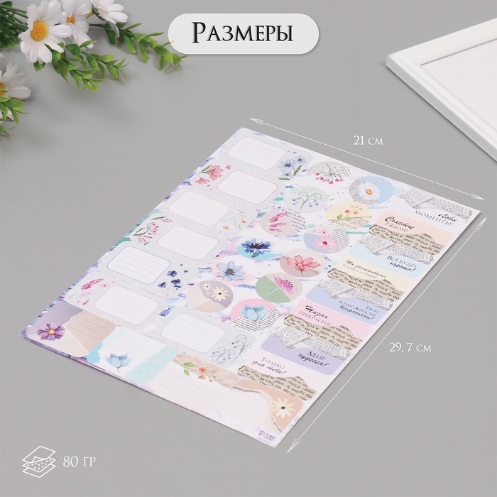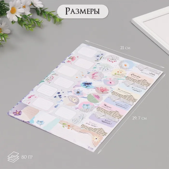 Наклейки на подарки "Цветы и газеты" 21х29,7 см — Характеристики