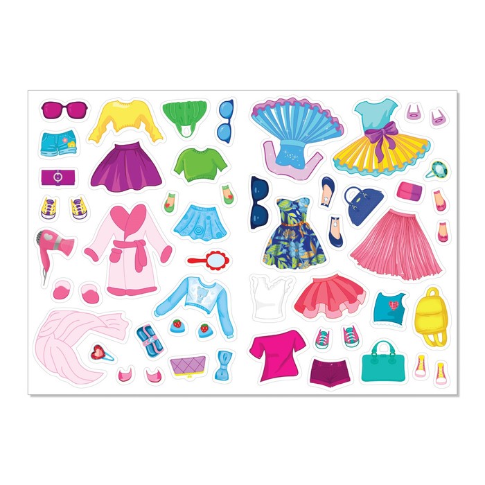 В книге ребёнка ждёт более 100 цветных наклеек с одеждой и аксессуарами для кукол.