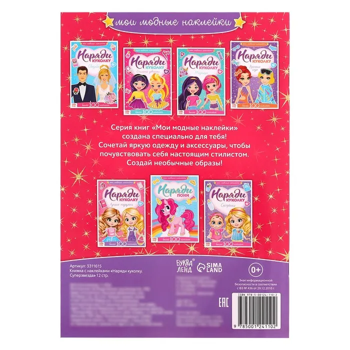 Наклейки «Наряди куколку. Суперзвезда», 12 стр. — Характеристики