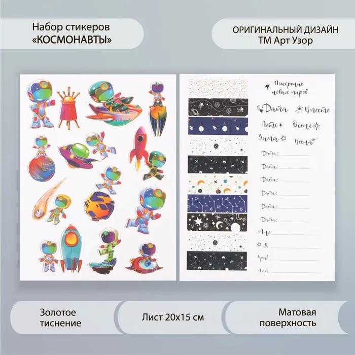 Набор бумажных наклеек для декора «Космонавты», 2 листа, 20×15 см