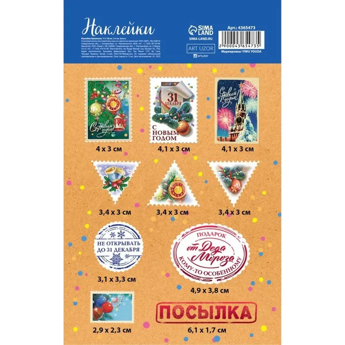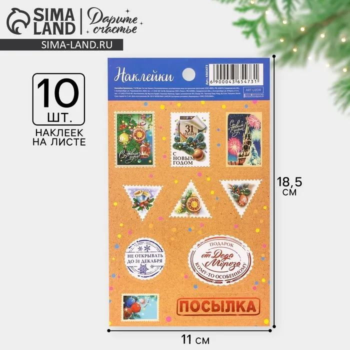 Наклейки новогодние бумажные «Для посылок», 11 х 18 см — Характеристики