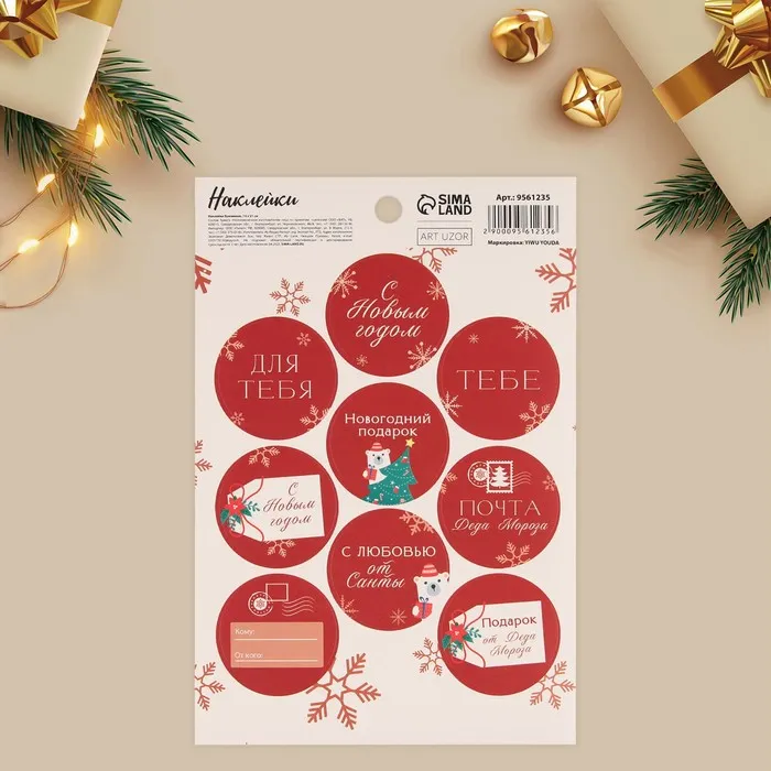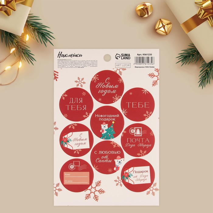 Наклейки новогодние бумажные на подарки «Почта», 14 х 21 см — Характеристики