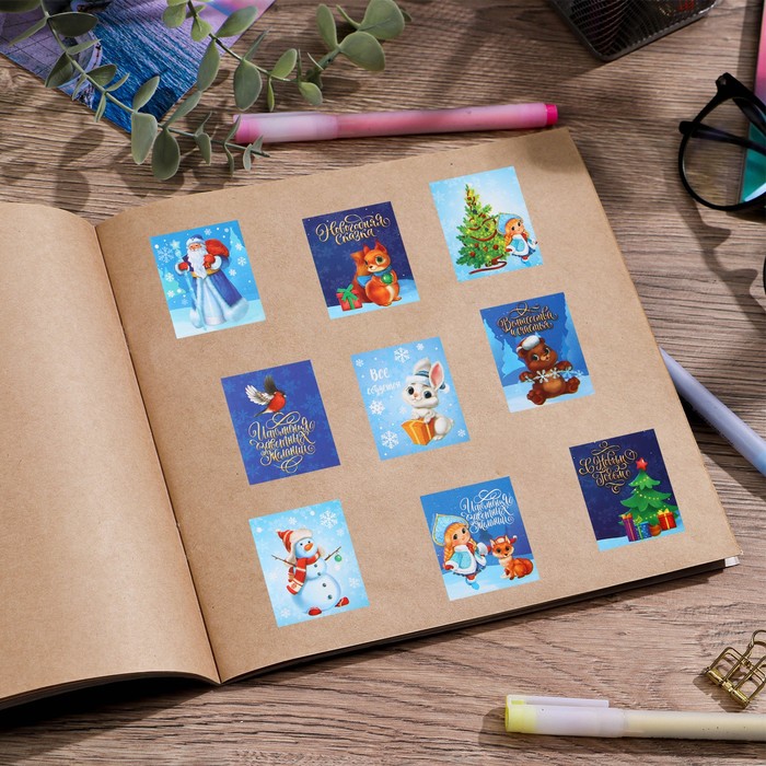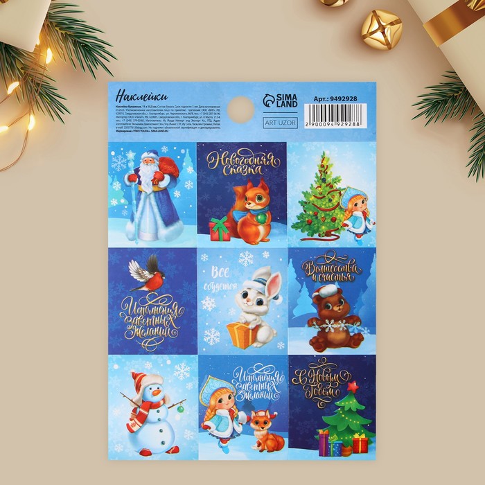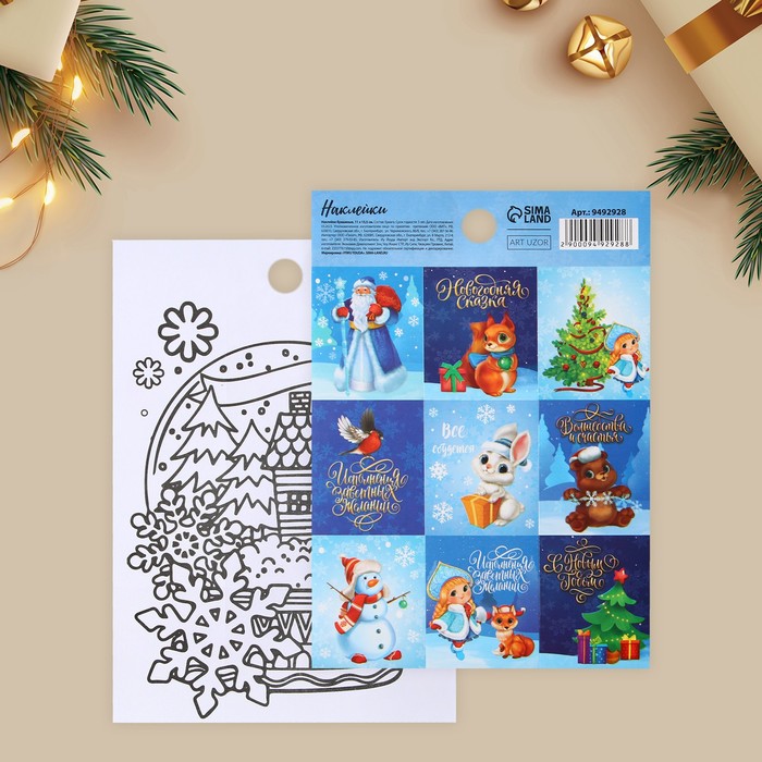 Наклейки новогодние бумажные «Новогодняя сказка», c раскраской, 11 х 15.5 см