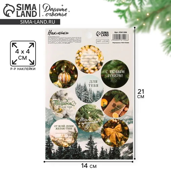 Наклейки новогодние бумажные «Подарок для тебя», на подарки, 14 х 21 см — Характеристики
