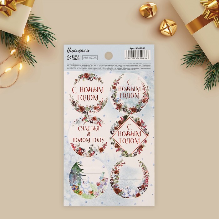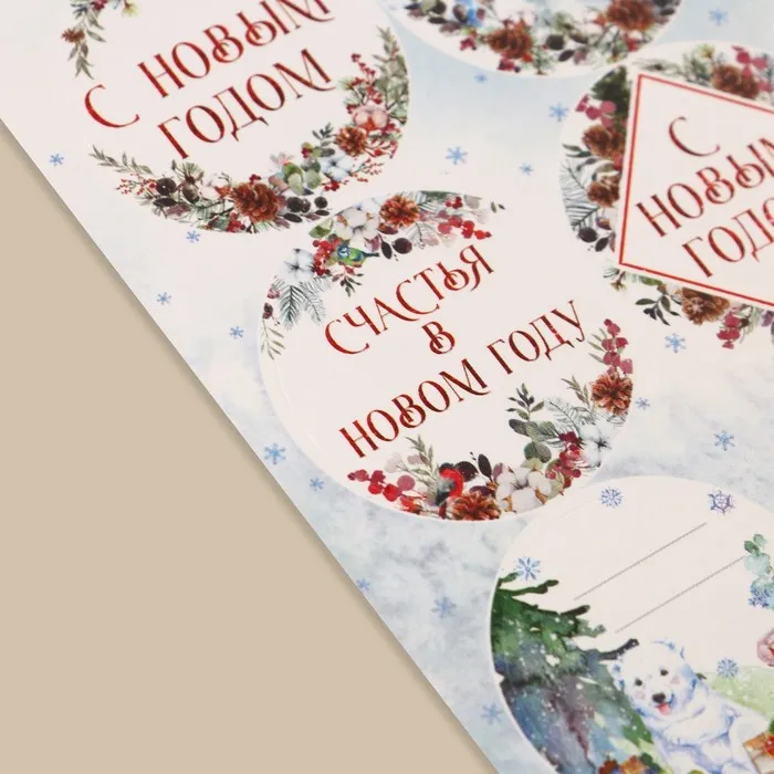 Наклейки новогодние бумажные «С Новым годом», на подарки, 9 х 16 см — Характеристики